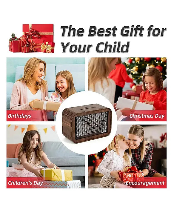 Really good wooden piggy bank! The build quality is solid, the finish looks premium, and the size is perfect for saving coins and notes. Exactly as shown in the pictures. Definitely worth the price.